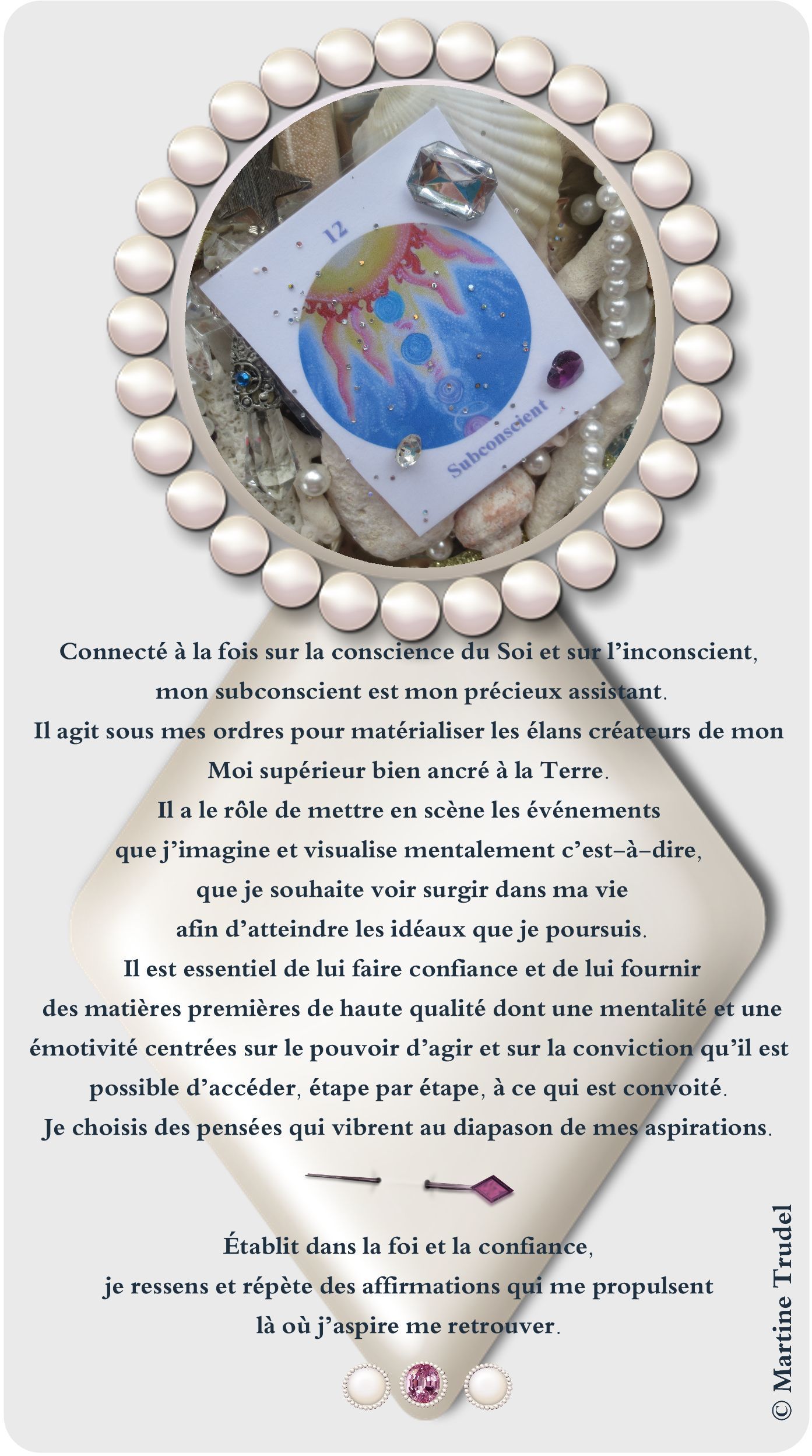 [2] Martine Trudel. «Fontaine de lumière : vivre et célébrer sa vie dans la lumière de la conscience du Soi», 2012 (non publié).